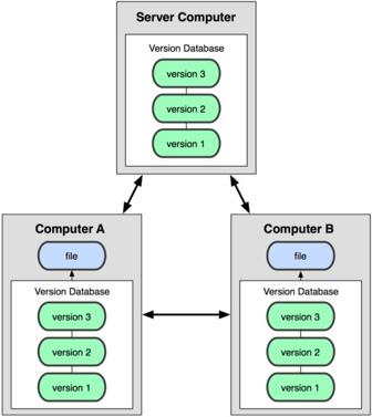 集中化的版本控制系统,例如像CVS,SVN等,有一个集中管理的服务器,所有开发人员通过客户端连到这台服务器,取出最新的文件或者提交更新,管理员可以掌控每个开发者的权限。集中化的VCS虽然解决了版本控制问题,还可以多人协作,但缺点就是太依赖于远程服务器,VCS服务器宕机后,会影响所有人的工作,并且在没有备份的情况下,会有数据丢失风险。