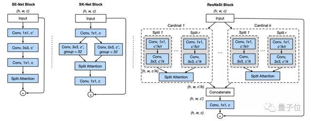 ResNeSt和SE-Net、SK-Net的对应图示如下: