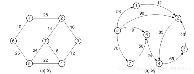 下列图示分别表示:无向有权图,有向有权图