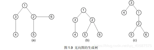 在图 1.9 中,图(b)把它画成了以顶点 1 为根结点的树,图(c)把它画成了以顶点 3 为根结点的树。