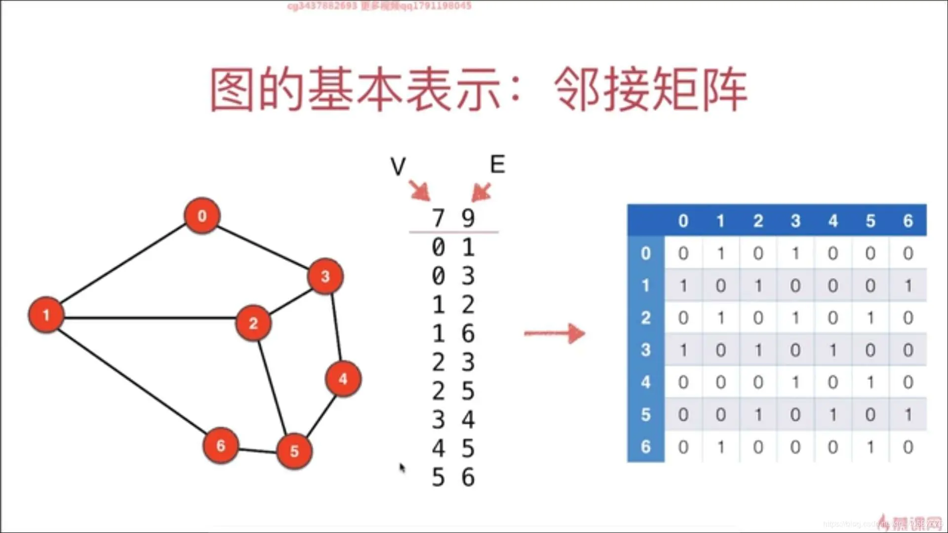 其中 V = 7 表示顶点的数量, E = 9 表示边的数量