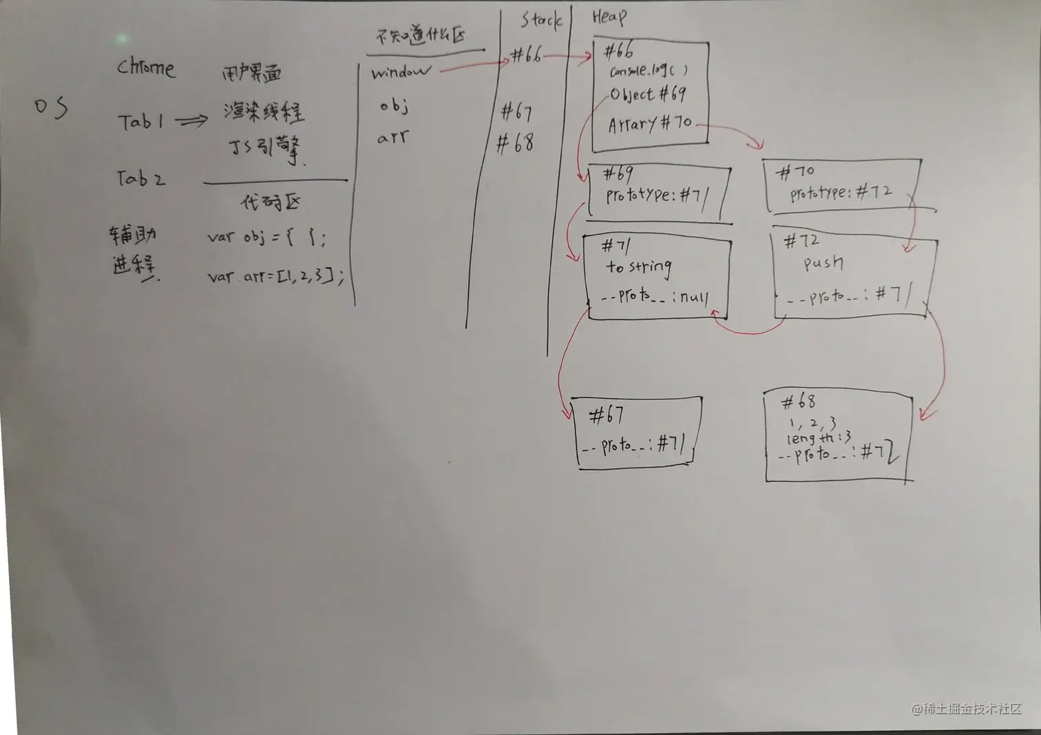 当我们使用obj或arr时,会通过__proto__ 指向各自的Prototype对应的地址,调用其中的内容。故称为原型链。