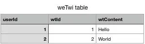 先看用户发微特,用户发微特我们只需要用一张表记录微特的内容即可。这个表呢大概长这样: