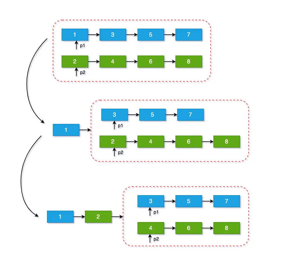- 两个都是递增有序链表