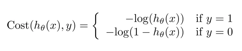 时,前面项为 0,正好对应之前的分段表达式,再添加上标代入代价函数