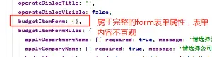 3、【建议】vue实例的data中,定义完一级属性之后,如果属于对象类型的,建议在该属性后面将涉及到的子属性完整列出,方便查看数据结构。