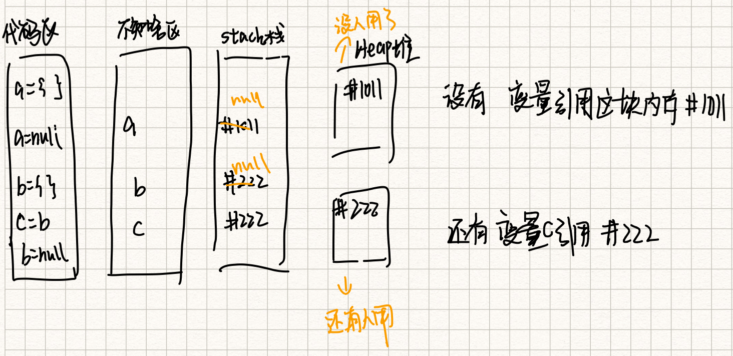 - 双变量对象引用,也就是一个对象被两个变量都引用了。如果其中一个变量被重新赋值了,那么这个对象还是被另一个变量引用,所以这个对象不是垃圾
