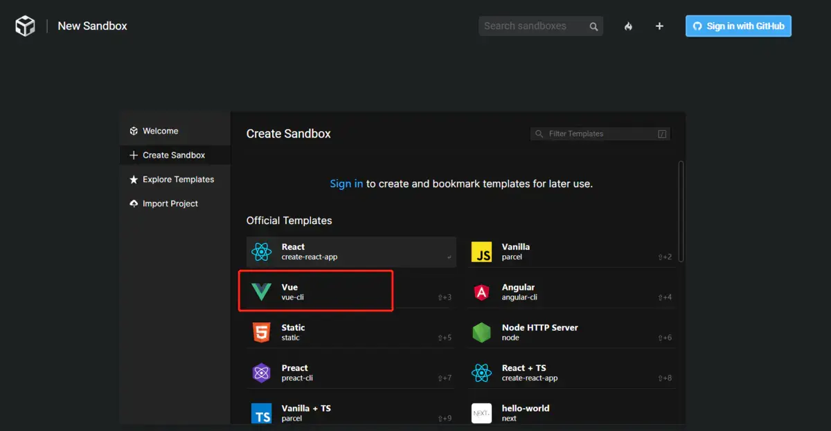 使用codesandbox快速生成Vue项目