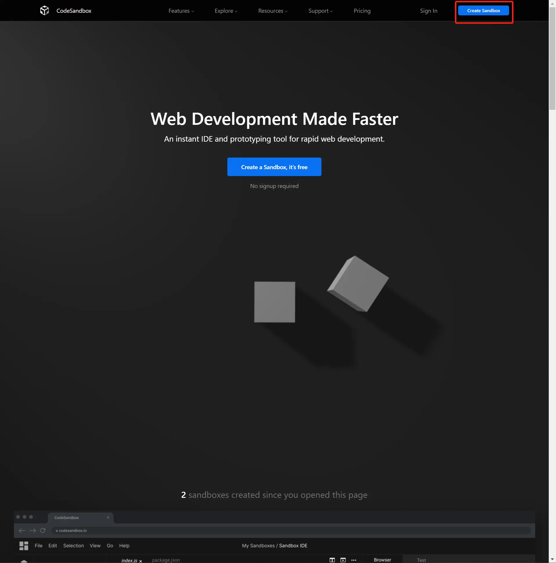 codesandbox.io是一个在线编辑器,能够快速创建项目。