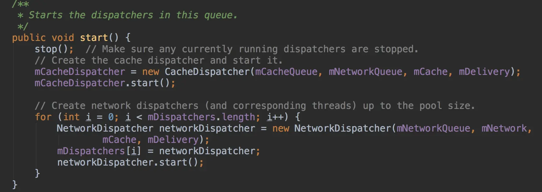 if (DEBUG) VolleyLog.v("start new dispatcher");