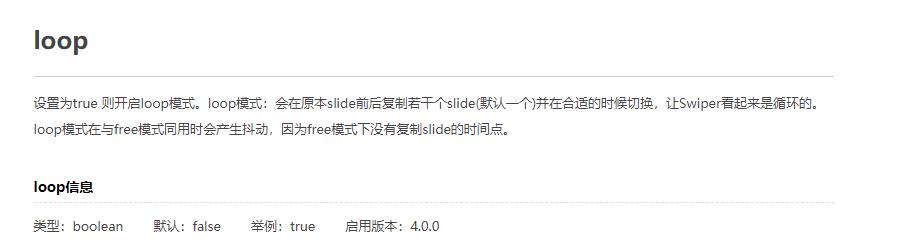 - 点击事件之前是直接在dom上绑定的click事件,loop为true后,多出的两个slide上的点击事件无效。此时,用swiper组件中的onclick做点击数事件的处理。此时,就要知道点击的是轮播中的那哪一个。