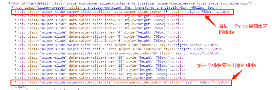 - 在程序运行中涉及到页面中一些dom的刷新操作,使用swiper提供的一些接口进行监听并不能实时对组件复制出的头尾两个slide进行实时刷新。百般无果,最后用了最粗暴的方式去解决。直接js更改首尾虚拟slide的dom样式
