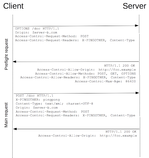 然而,出于安全性考虑,在发送真实请求,特别是(PUT, DELETE)请求前,服务端需要先验证该请求是否会对用户数据造成影响,这一次请求是否安全,因此还有一种preflighted requests,这其实是一个option request。