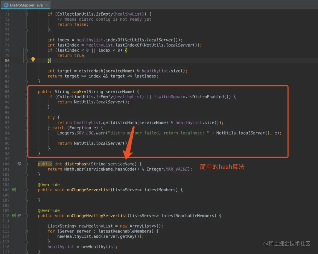 distro协议判断服务的负责节点采用简单的hash算法,如果nacos某节点宕机,则所有的服务都会重新计算映射到新的节点,变动较多,如果能采用一致性hash算法,则单节点宕机,只转移该故障节点负责的服务。