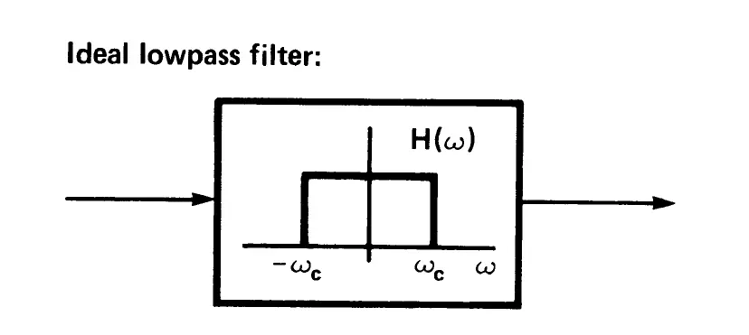 滤波介绍: 卷积特性是滤波的基础,不同的系统有不同的冲击响应H(ω):以下为 低通滤波器,X(ω)与H(ω)相乘后响应只包含频率为-ωc~ωc的部分