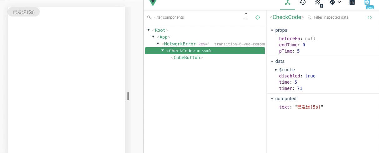 - 点击验证码之前事件触发,并且可以阻止发送验证码
