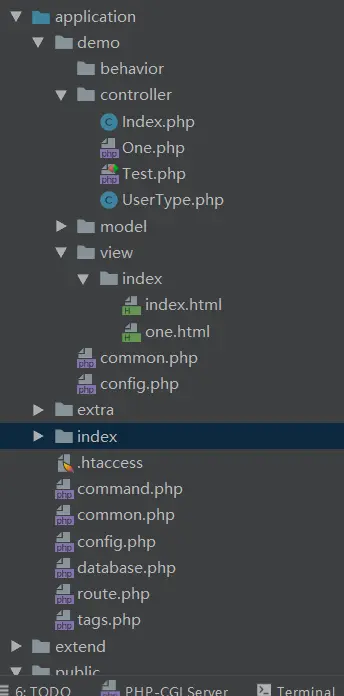 访问http://localhost:8080(端口号按照你自己配置的来,默认是80端口,我这里该成了8080)/你项目的跟目录/public/index.php/demo(如: http://localhost:8080/thinkphp_5.0.24_with_extend/public/index.php/demo)