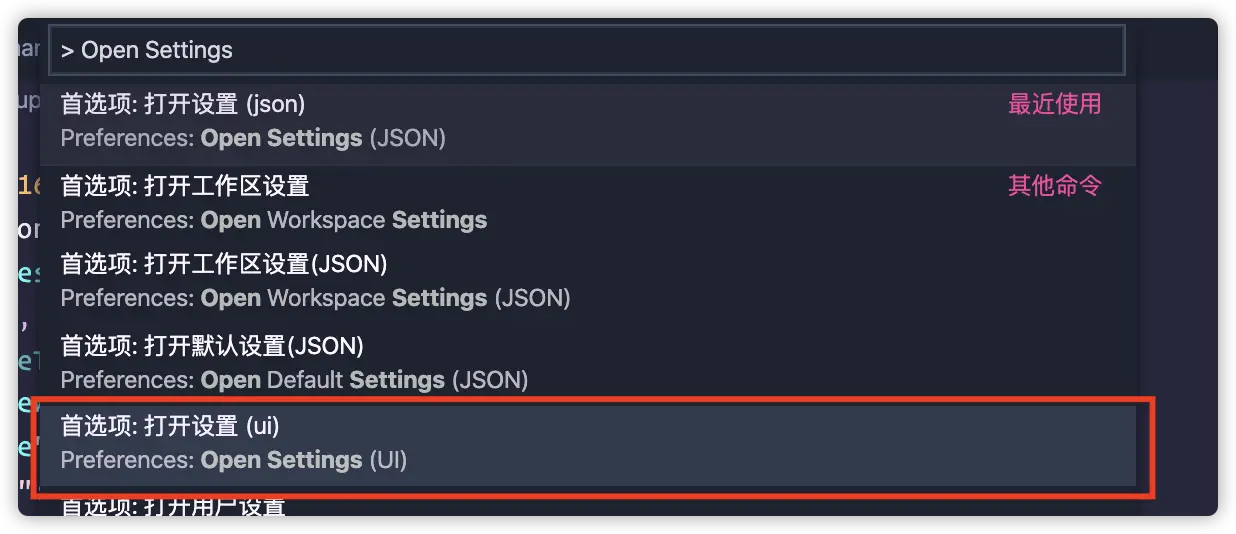 > Open Settings,然后选择首选项:打开设置(ui) - 在