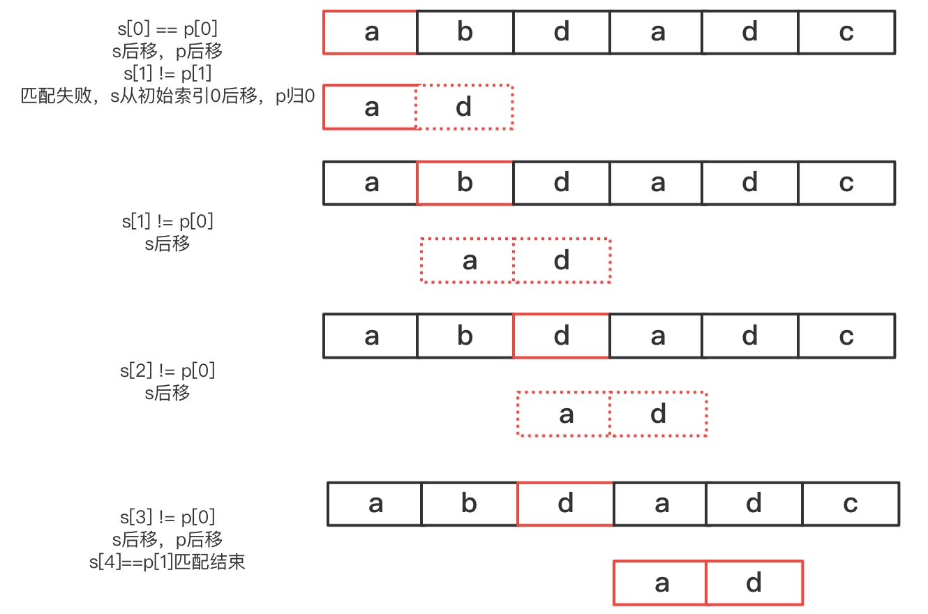 i=0开始,依次对比s[i]和p[0]的值 - 如果