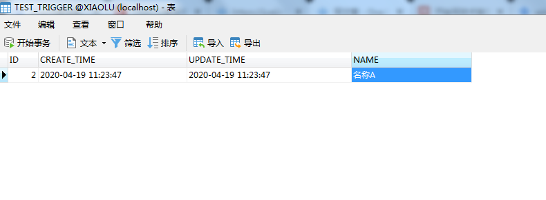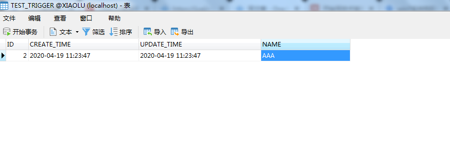 insert into test_trigger values(2,sysdate,sysdate,'AAA');数据如下图所示: