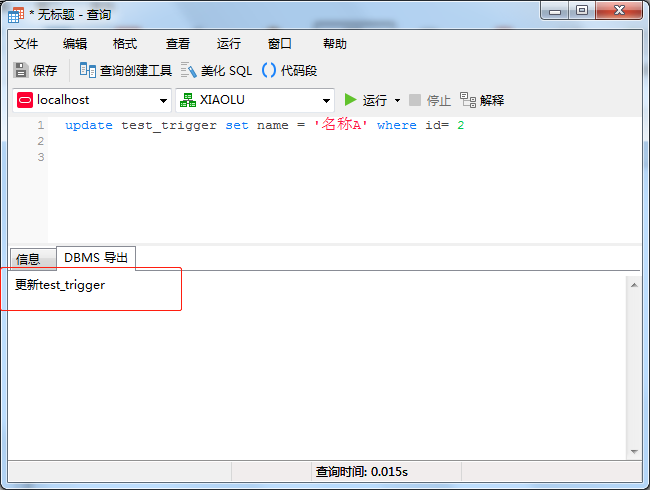 update test_trigger set name = '名称A' where id= 24、运行结果