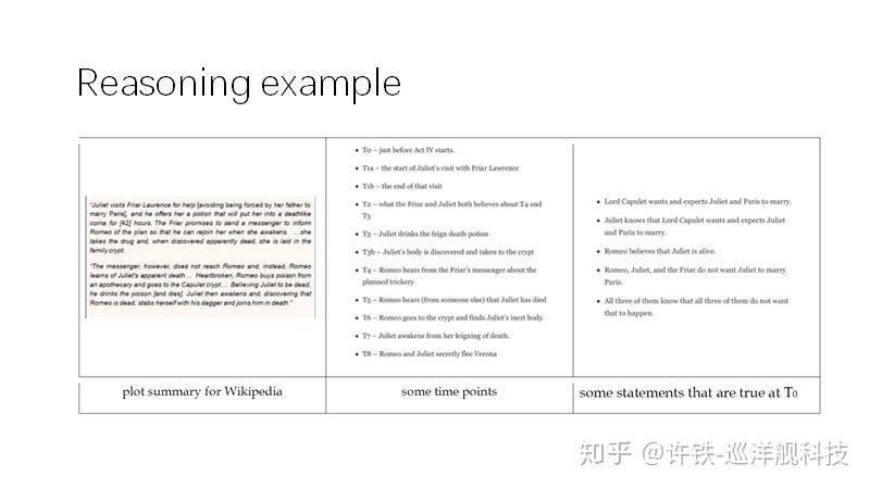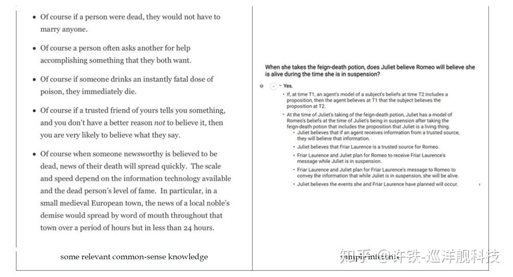 比如文中举出了如何让机器理解罗密欧与朱丽叶的剧本的例子,这个例子的主要含义是单纯基于对话语料训练是不可能得到真正的理解的。 因为我们发现语料虽然只有那么几句, 但是背后需要用到的背景知识却是它的几倍。 这是说明如果我们要达到真正的自然语言理解, 需要一个模型把这些隐形的常识和世界运行的规则都包含进去, 否则都做到真正的理解是不可能的。