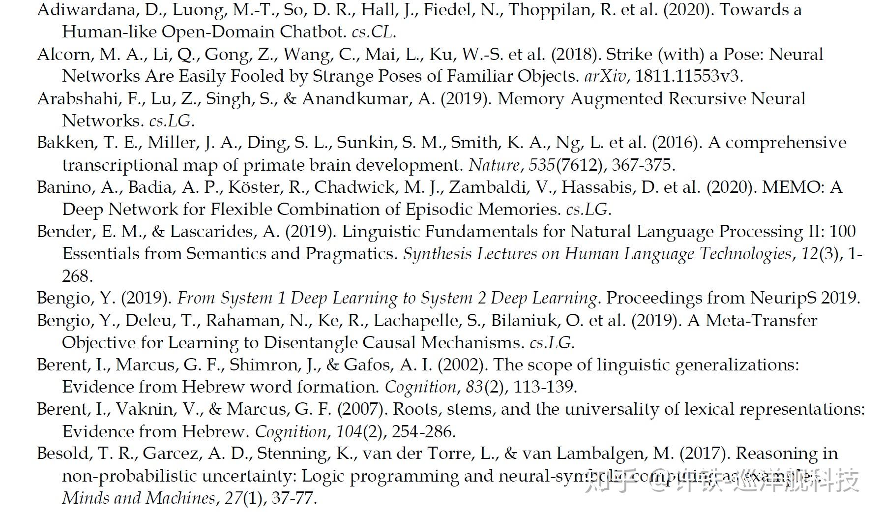 最后我们可以扫一眼其引用文献之丰富,可以说包含了从经典的符号AI到脑科学到深度学习的全部,而且都是一般深度学习者所不知的一些内容: