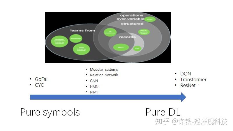 虽然这看上去像是一个不可能的任务, 但是事实上当下的很多深度学习研究,已经逐步把这种思路融入到这个思维体系来, 它们或多或少的处于纯粹符号的AI, 和目前完全无模型的深度学习的某个中间位置。 比如说各种模块化系统, 关系网络, 一些图网络, RIM(独立因果RNN)等。