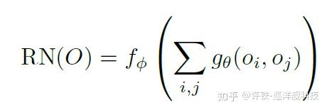 - 关系网络。 如果我们想要让基于统计的神经网络模型某种程度掌握物体和物体之间基本的作用规律, 从而让深度学习看起来好像掌握一个符号体系。我们可以把这种物体和物体之间的关系显式的表达在神经网络里,比如通过下面的函数g表达所有物体之间的关系可能。 最后再把这些物体的整体表示通过f映射成我们需要的结果, 此处的g和f均是神经网络。