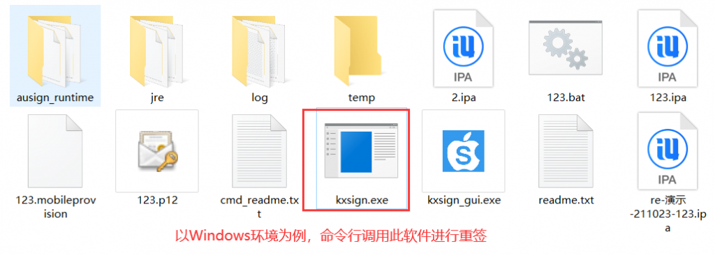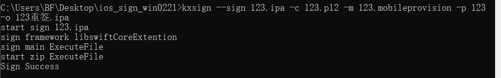 kxsign --sign 123.ipa -c 123.p12 -m 123.mobileprovision -p 123 -o 123重签.ipa