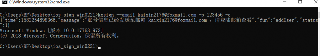 kxsign --email kaixin2176@foxmail.com -p 123456 -c