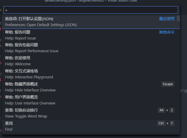 在 VsCode 中全局命令使用 ctrl+shift+p 快捷键 ,如下图所示: