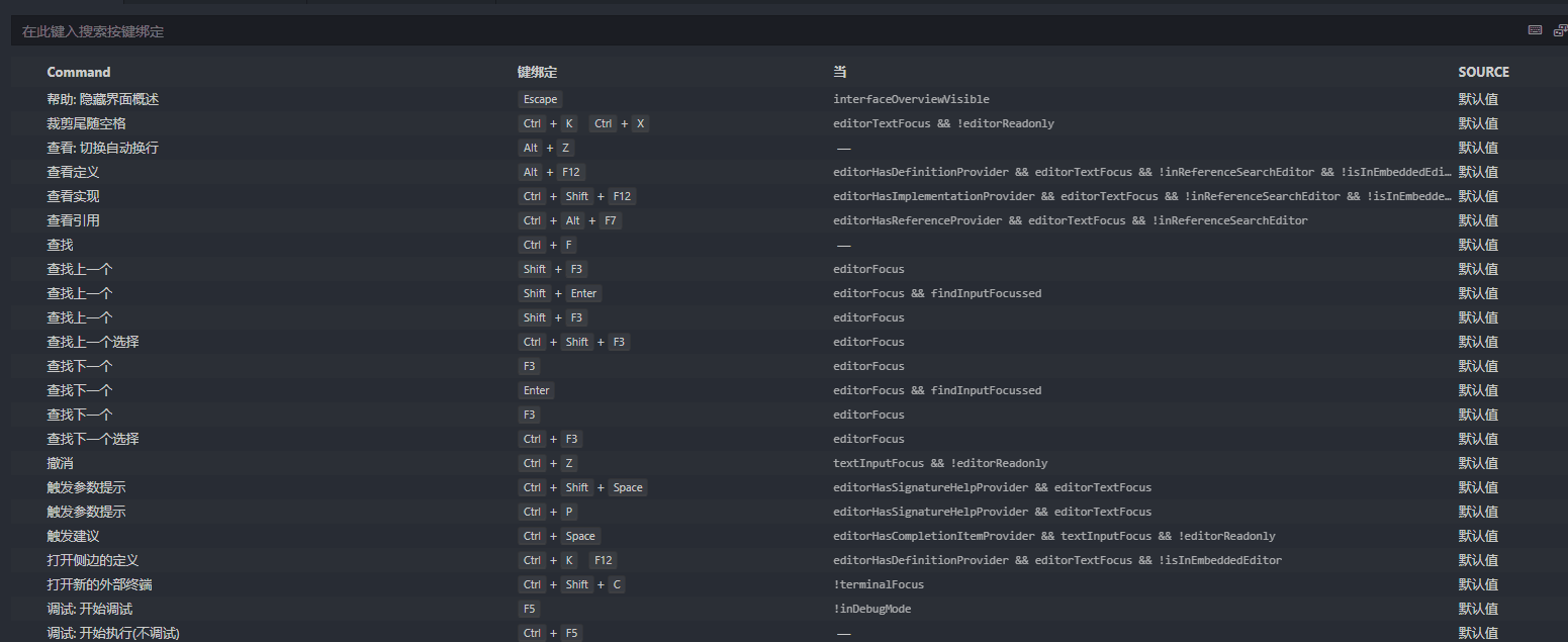 VS Code的快捷键有很多,需要具体的请仔细参考 VS Code => 左下角设置按钮 => 键盘快捷方式
