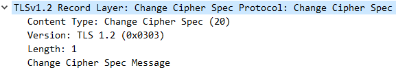 Change Cipher Spec子消息很简单,作用是告诉服务器端,客户端需要的加密参数都准备好了,客户端的TLS记录层协议可以对数据进行加密了,将连接状态由待读状态和待写状态切换为可读状态与可写状态: