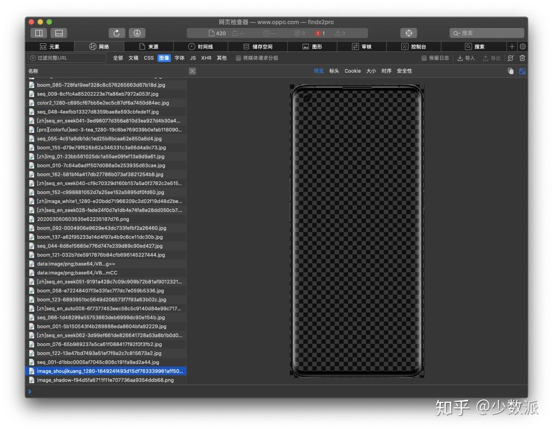 此时我们需要刷新页面,并将滚动条拖动至最下方以加载所有页面元素。然后我们切换到「网络」选项卡,在上方的过滤器中选择「图片」,接下来我们就可以在左侧的图片列表中进行搜索了。