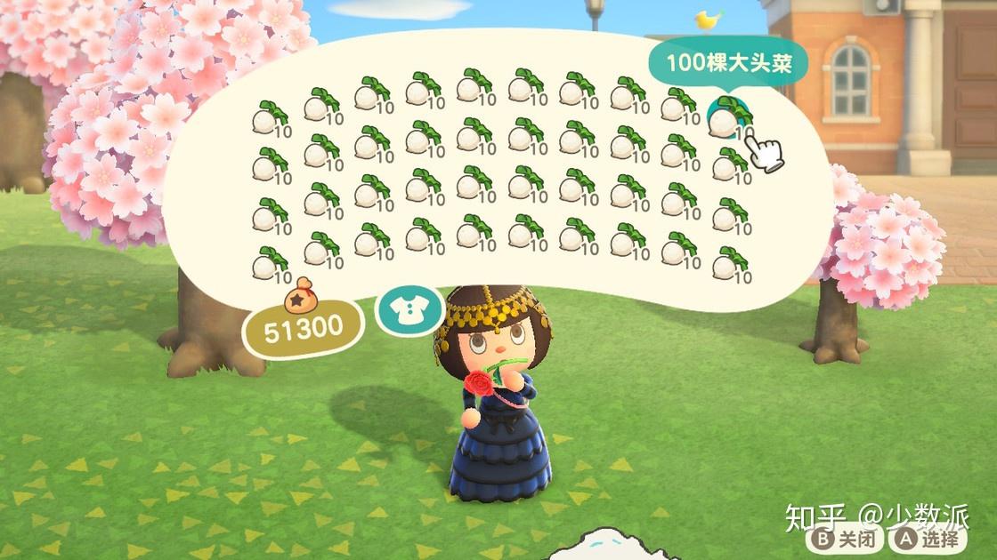 说到菜,就不得不来说说动森炒股工具——大头菜。我相信新玩家因大头菜而入坑不在少数,作为一周一次的炒股利器(本质是期货),大头菜可以让岛民一夜暴富。以最低价 90 铃钱/颗入手,550 出手,背包满仓 4 万颗,一背包就能赚 184 万,三背包就能把三室一厅带二楼和地下室统统给你扩建好。难怪大头菜要上微博热搜啊,《刑法》里赚钱的路子也没它来得快啊。