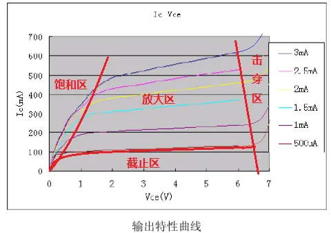以NPN举例,输出特性研究的是三极管Uce电压和Ic关系;