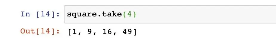 我们想看结果就必须要执行行动操作,比如take,我们take一下查看一下结果: