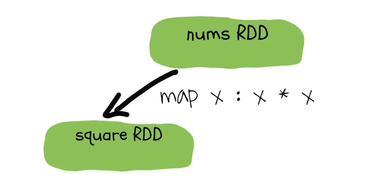 比如假设我们有一个序列[1, 3, 4, 7],我们希望将当中每一个元素执行平方操作。我们当然可以用for循环执行,但是在spark当中更好的办法是使用map。