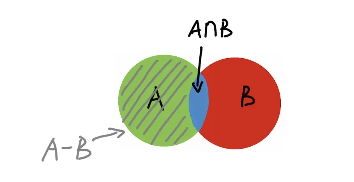 最后一个是subtract,也就是差集,就是属于A不属于B的元素,同样我们可以用图来表示: