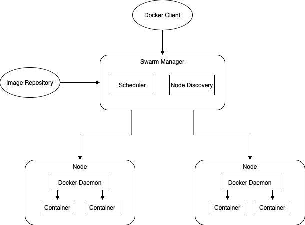 使用 Docker Client 可以与 Swarm Manager 交互,而 Swarm Manager 是整个集群的 Leader,由 Raft 算法选举而来,包含了基本的调度、节点发现等基本功能。Swarm Manager 通过 API 与所有节点交互,通过节点上的 Docker Daemon 控制容器的运行。