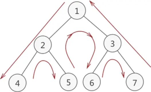 因此,在编程实现时,我们可以设定真正访问各个节点的时机,换句话说,我们既可以在第一次经过各节点时就执行访问程序,也可以在第二次经过各节点时访问,甚至可以在最后一次经过各节点时访问。