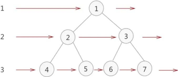 先序遍历:每遇到一个节点,先访问,然后再遍历其左右子树(对应①)