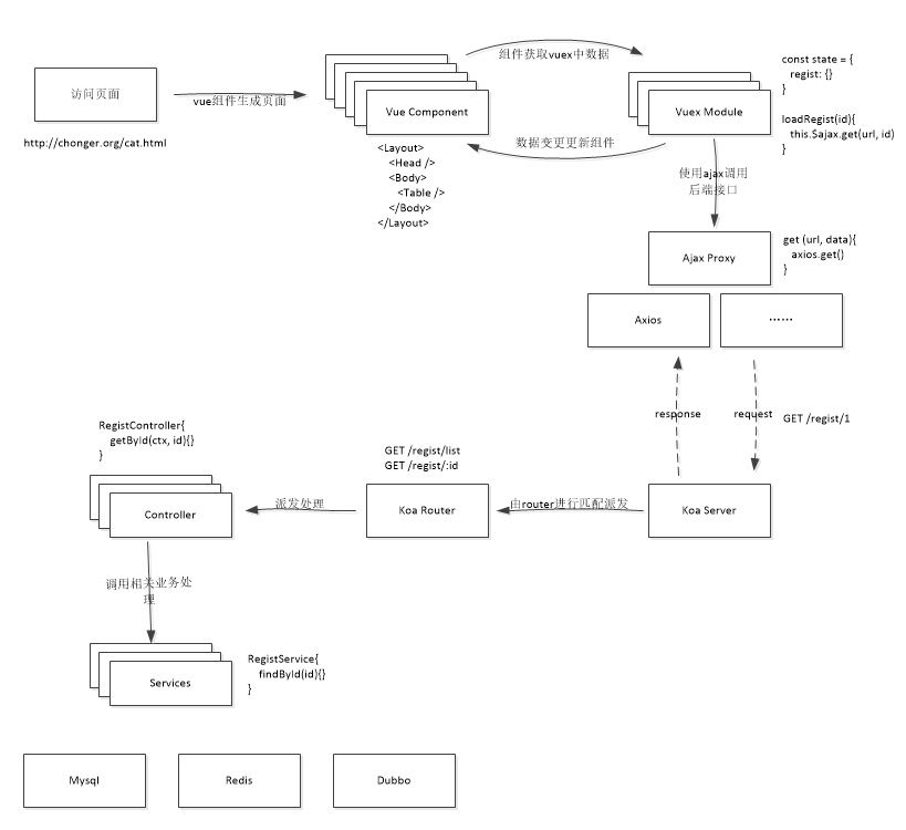 后端的话徘徊于Go 和nodejs ,其实我更喜欢Go ,尤其是交叉编译,之前也有基于Go 做过简单的B/S工具,非常的舒服,以后找时间分享出来。这次,考虑到时间紧迫,就暂定了nodejs 。主要是会与mysql 、redis 、dubbo 等服务交互,相对熟悉一些。