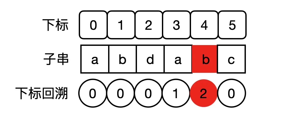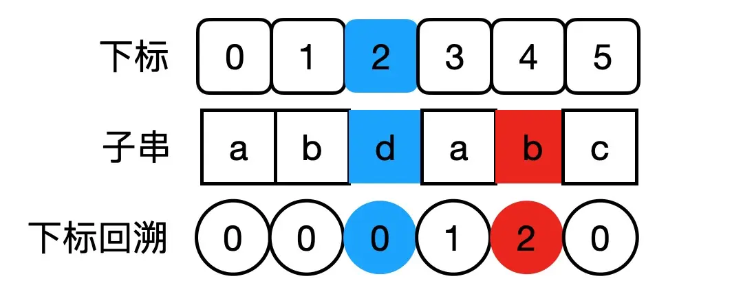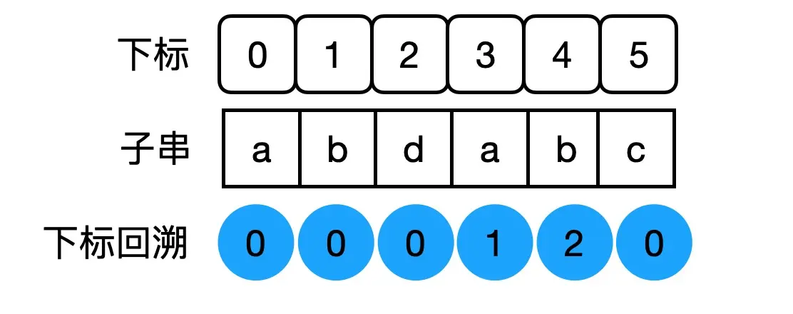 我们根据字符下标,通过字符内容,转化成一个回溯的下标数组,先看一下结果:蓝色部分就是回溯下标