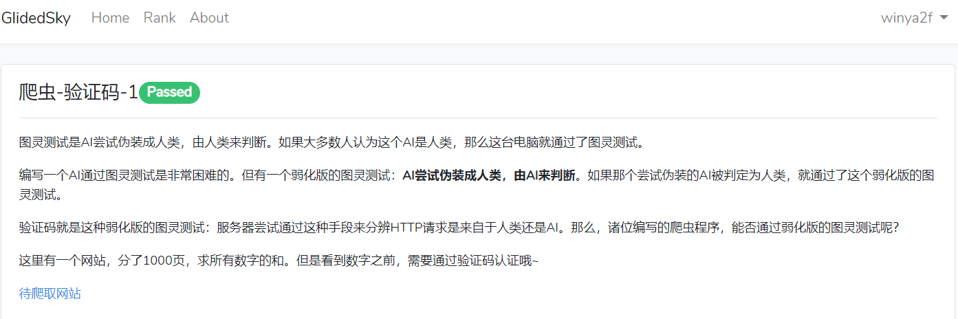 搞爬虫,应该会知道这个网站。这次我们要做的就是 爬虫-验证码-1 这一题