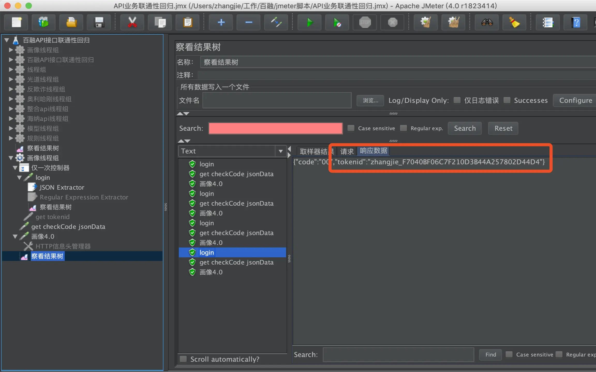 以画像API项目的测试为例,在调用登录API的请求中,需要返回登录后的tokenid。