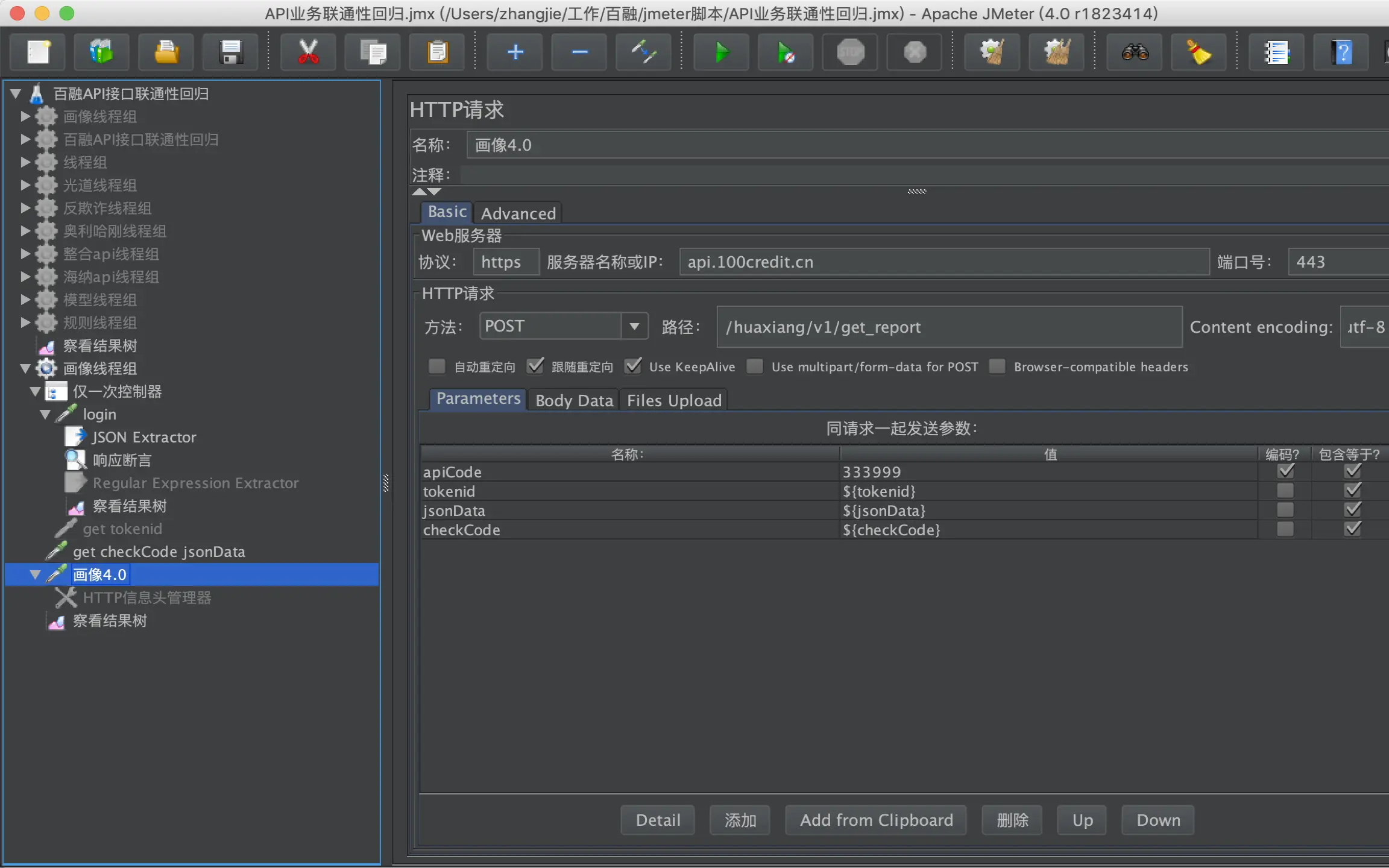 比如在查询画像API的过程中,我们需要利用前一步登录时获取的tokenid来调用查询接口,查询画像API数据产品。如图所示,在查询请求的tokenid位置引用${tokenid},即可完成查询请求。