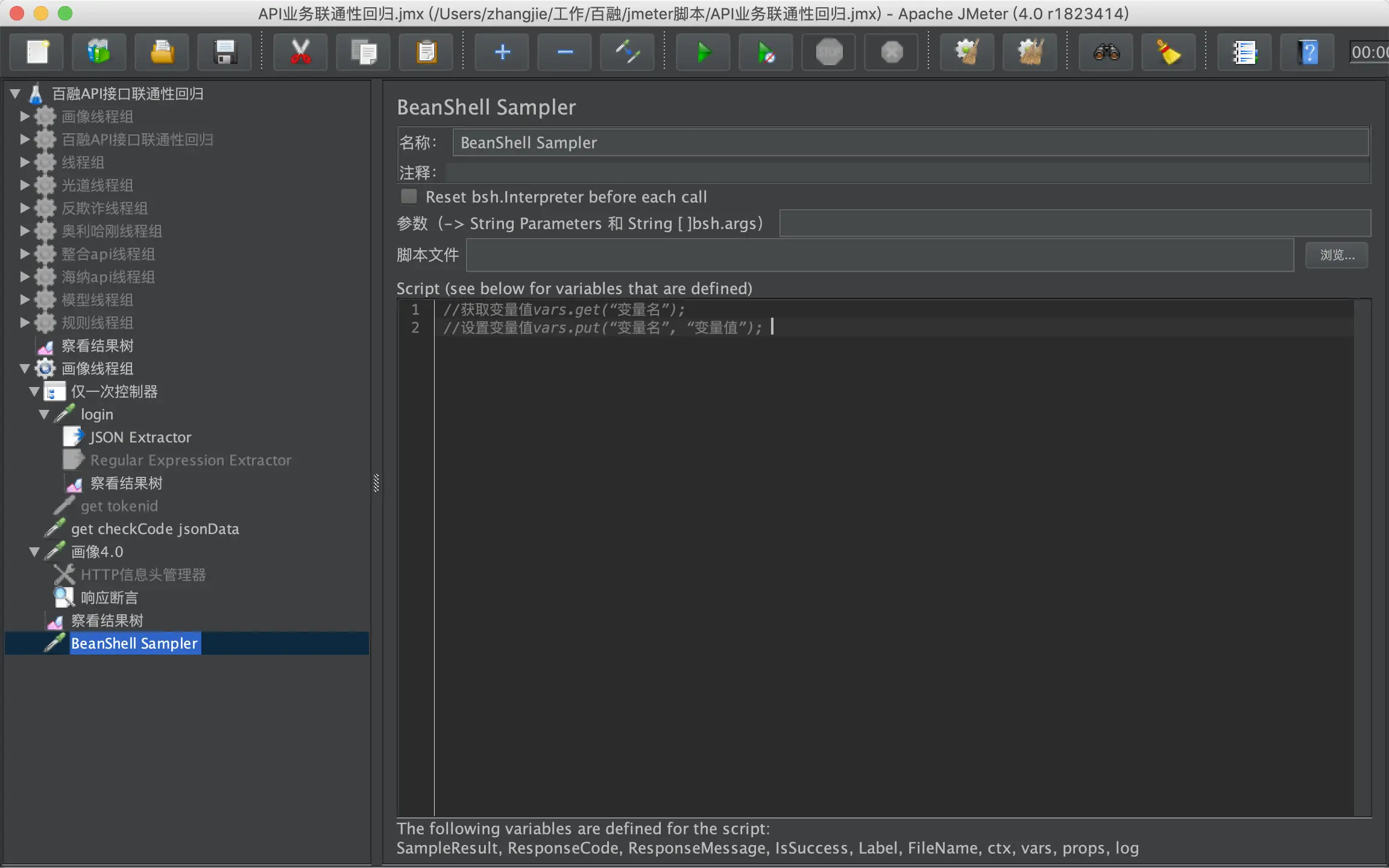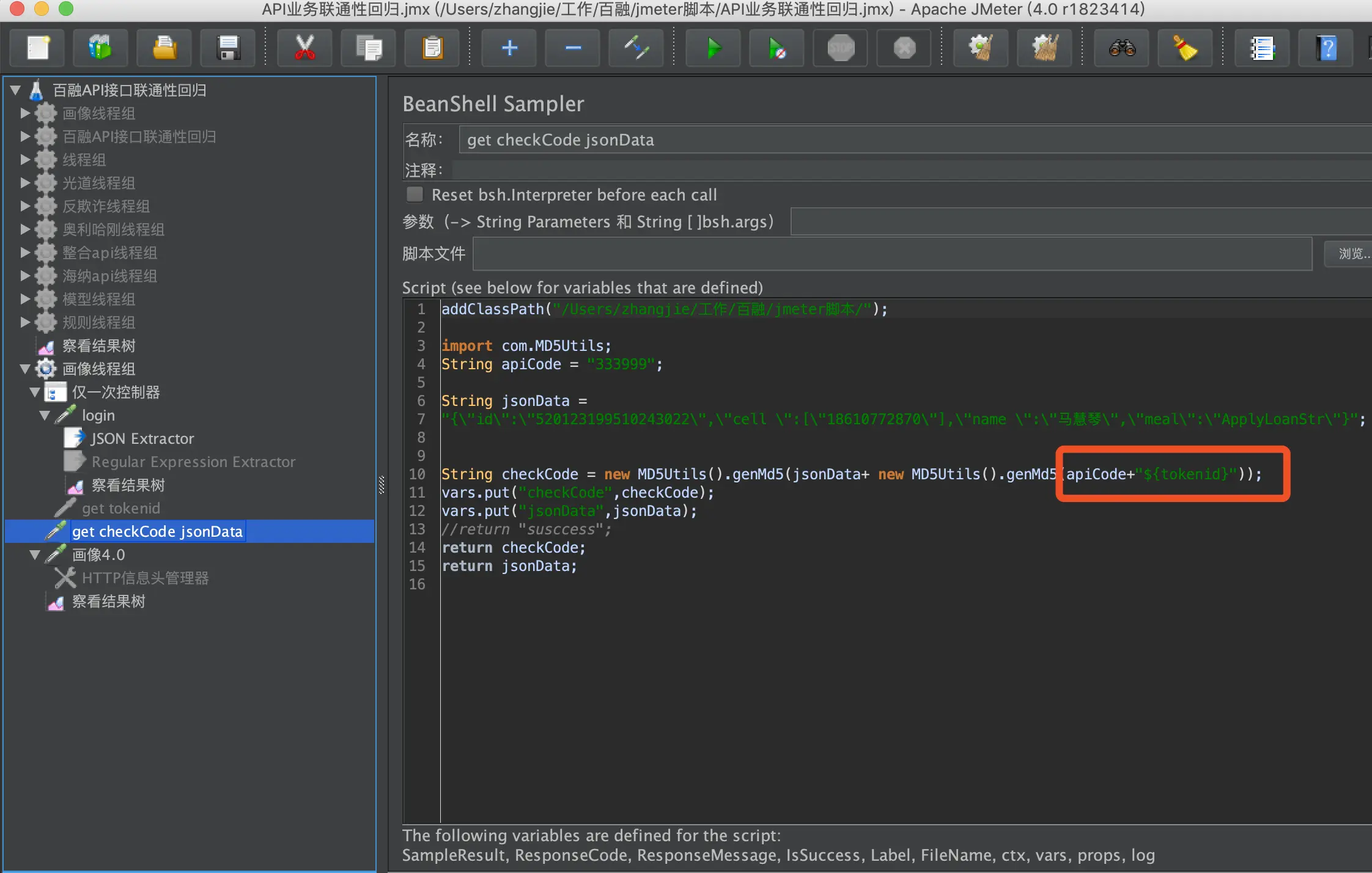 比如在测试API服务时,需要构造像 checkCode、 jsonData,这在不使用BeanShell的情况下,仅凭jmeter变量很难做到。而有了BeanShell,这种构造就变得十分简单。