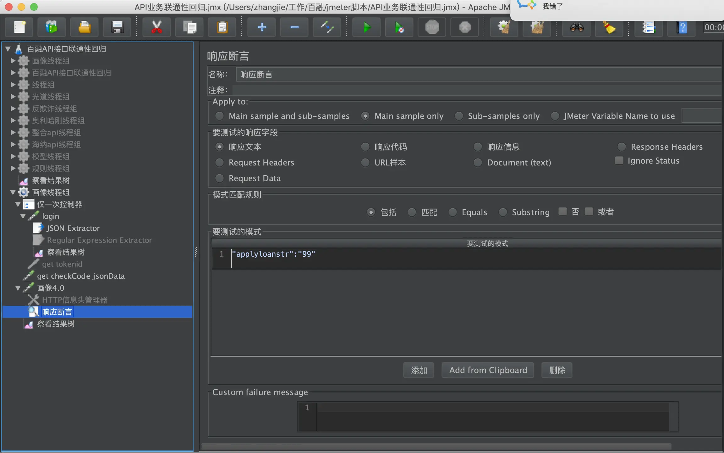 通过添加断言,我们可以自己设置一些错误标识,经筛选后在结果树和聚合报告显示为错误,并计入错误率统计,方便我们随时观察测试中的错误情况。